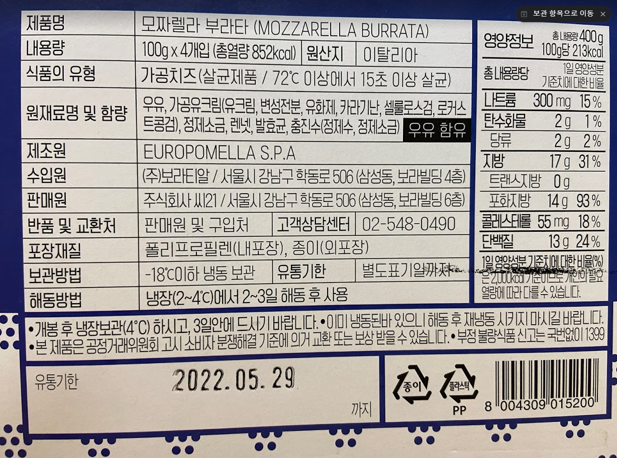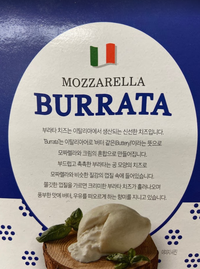 '유로 포멜라 모짜렐렐라 부라타 치즈' 입니다.