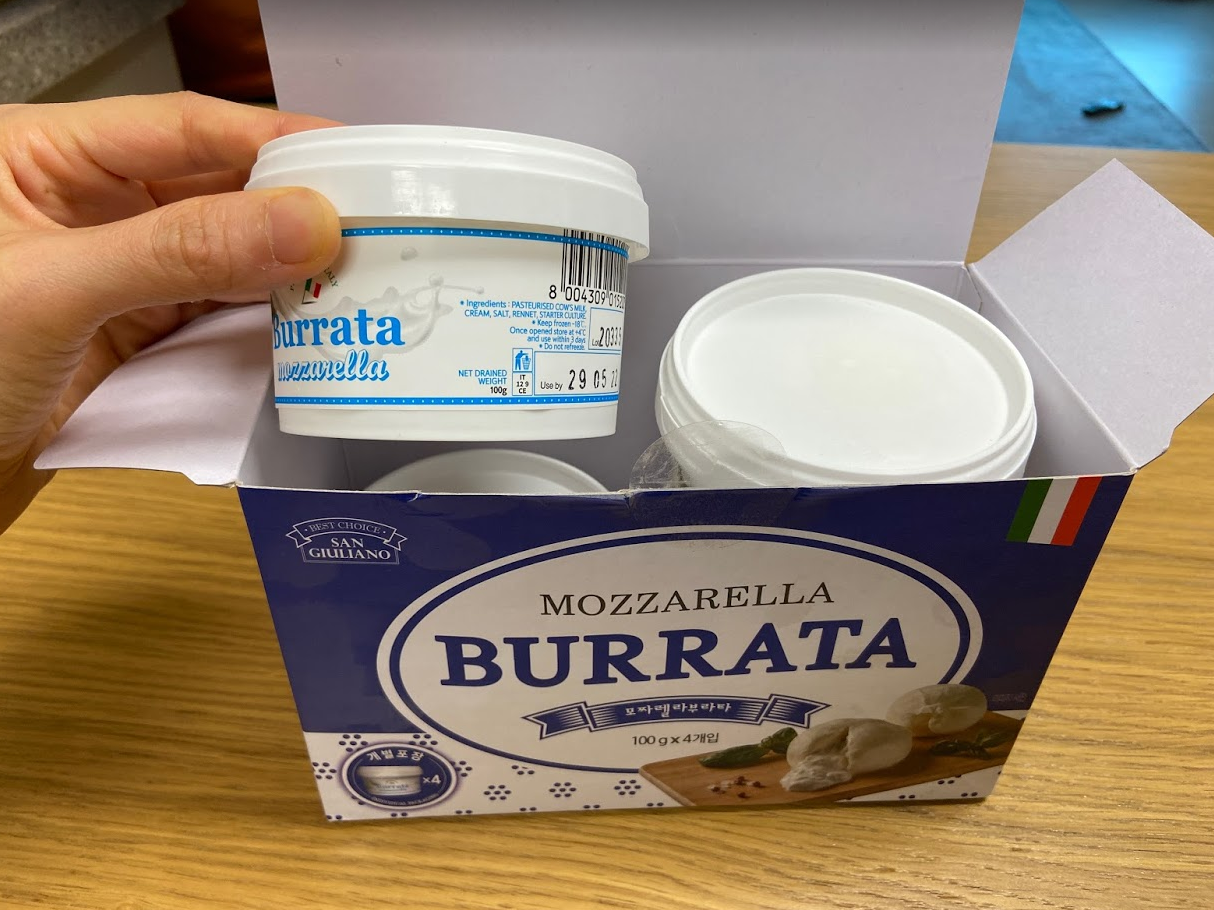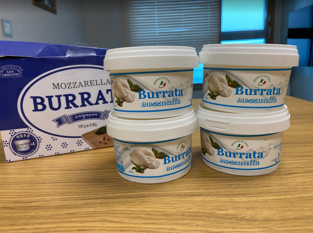 상자 안에 부라타치즈 4개가 들어있고