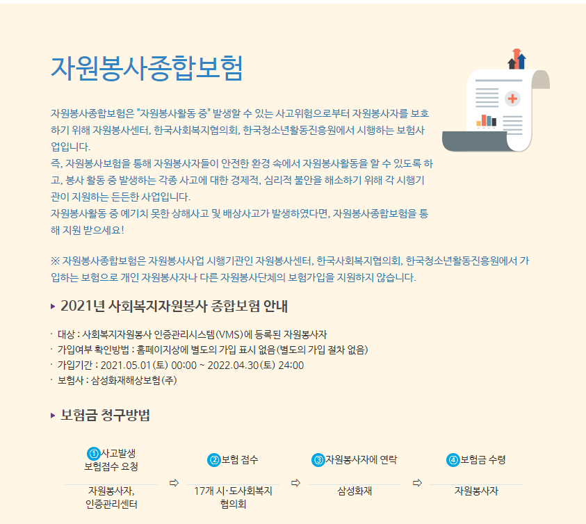 봉사활동 중 혹시모를 사고가 걱정된다면 안심하셔도 됩니다.